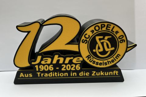 Der SC Opel feiert Jubiläum: 120 Jahre besteht unser Verein. Aus diesem Anlass hat unser Mitglied Daniel Fink eine hochwertige Jubiläumsskulptur aus Biokunststoff erstellt. Die Auflage ist limitiert auf 120 Exemplare, jedes mit einer eigenen Seriennummer versehen. Für 30 Euro gibt es dieses einmalige und unvergessliche Erinnerungsstück. Und noch besser: Werde Mitglied im Club 120 und Du bekommst das aufwändig erstellte Sammlerobjekt geschenkt.